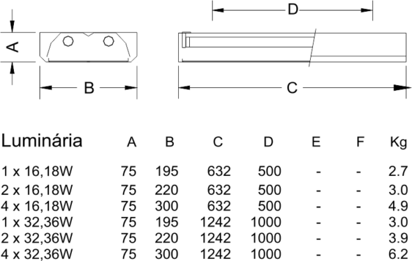 Luminaria de sobreponer, fabricada de placa de acero con pintura electroestática de color blanco RaI-9003. Conjunto óptico con reflector parabólico de aluminio anodizado brilhante. esta luminaria permite que se Ie inserten aletas o difusores después de su instalación. instalación de sobreponer.