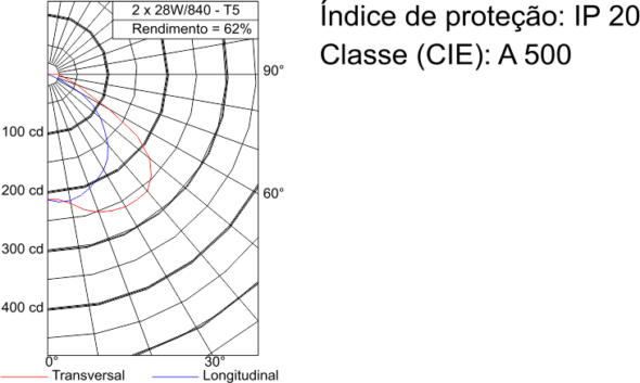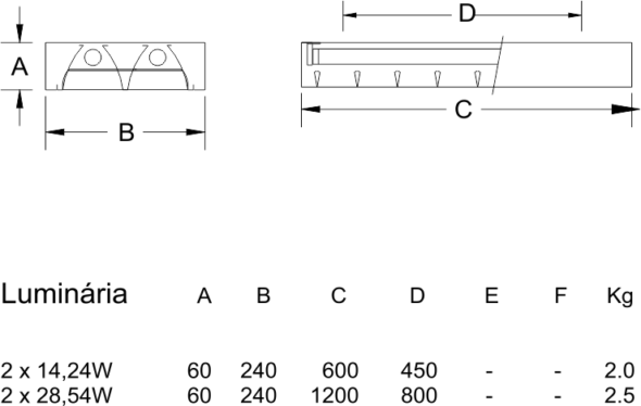 Luminária de sobrepor, fabricada em chapa de aço com pintura eletrostática cor branca RaI 9003. Conjunto óptico com refletores parabólicas e aletas duplas parabólicas em alumínio anodizado semi-fosco (MATT). Instalação de sobrepor, fixa ao teto.