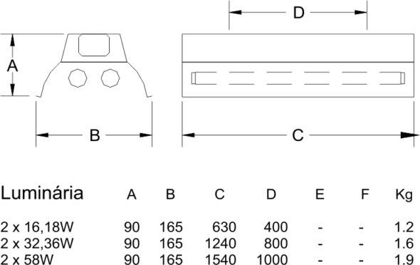 Luminaria de sobreponer, fabricada de placa de acero con pintura electroestática de color blanco RaI-9003. Conjunto óptico con reflector facetado de aluminio anodizado brilhante. Instalación de sobreponer.