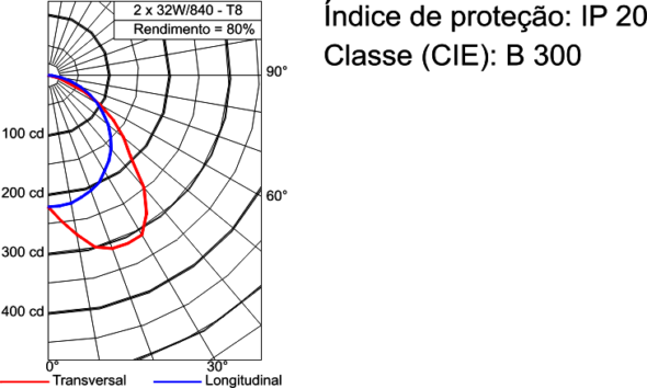 Luminária de sobrepor, fabricada em chapa de aço com pintura eletrostática cor branca RaI-9003. Conjunto óptico com refletor facetado em alumínio anodizado brilhante. Instalação de sobrepor.