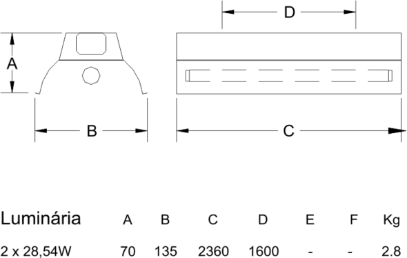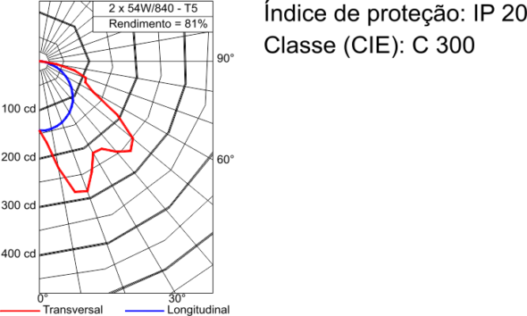 Luminária de sobrepor, com lâmpadas contínuas, fabricada em chapa de aço com pintura eletrostática na cor branca RaI-9003. Conjunto óptico com refletores facetados em alumínio anodizado brilhante. Instalação de sobrepor.