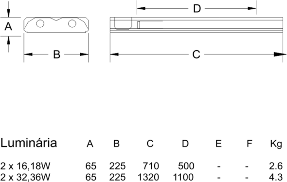 Luminária de sobrepor, fabricada em chapa de aço com pintura eletrostática cor branca RaI-9003. Conjunto óptico com refletor facetado em aluminio anodizado brilhante. Reator alojado no interior da luminária, sob tampa frontal. Instalação de sobrepor.