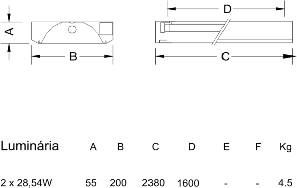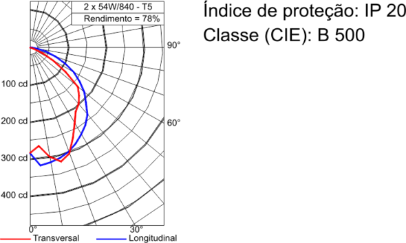 Luminária de sobreponer, con lámparas continuas, fabricada de placa de acero con pintura electroestática de color blanco RaI-9003. Conjunto óptico con reflectores facetados de aluminio anodizado brillante. Instalación de sobreponer.